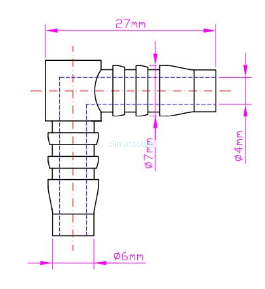Kolano, łącznik kątowy wężyka do skroplin 6mm