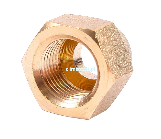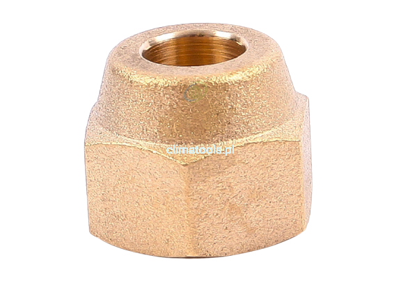 Nakrętka mosiężna, narzutka 1/4" x 1/4" (6.25mm) stosowana w połączeniu ze złączkami (U2-4) do łączenia rur miedzianych w klimatyzacji lub chłodnictwie.