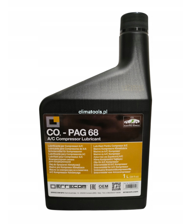 Olej do układów klimatyzacji PAG68, pojemność 1 litr. czynnik CO2 - Hybrydy/elektryczne w pojazdach samochodowych