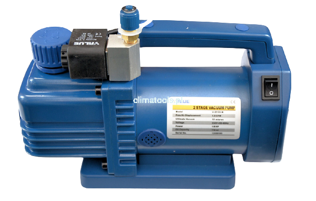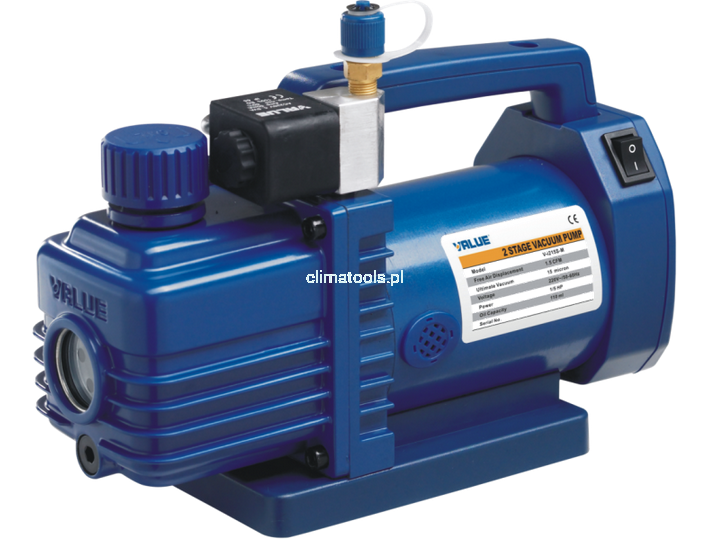Pompa próżniowa dwustopniowa niewielkich rozmiarów stosowana w chłodnictwie i klimatyzacji przeznaczona do pracy z czynnikami chłodniczymi z grupy HFC i HCFC (np: R410A, R407C)