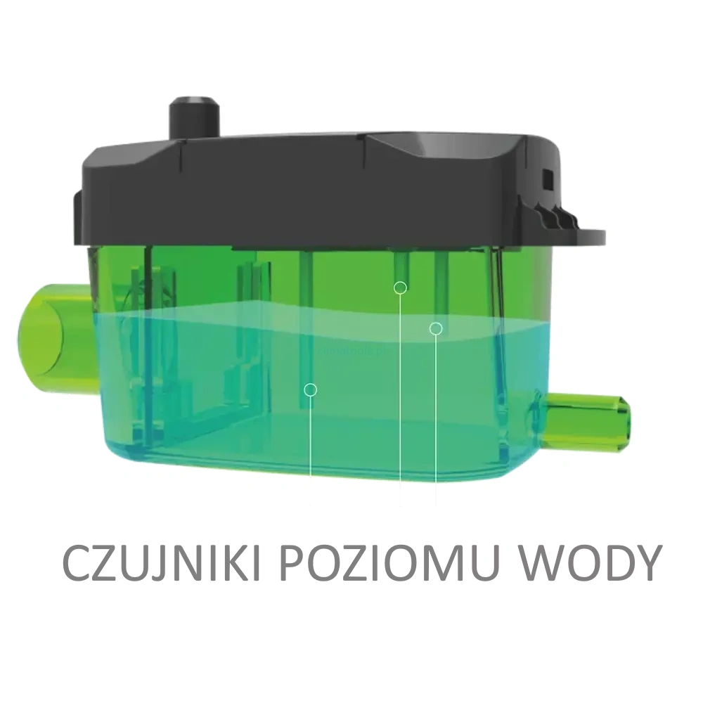 Bezszczotkowy silnik i czujnik bezpływakowy zapewniają długą żywotność i bardzo cichą pracę. Stan pracy można sprawdzić za pomocą wskaźnika LED umieszczonego w produkcie.