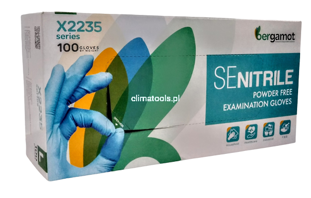 Rękawice BERGAMOT nitrylowe bezpudrowe Niebieskie L 100szt