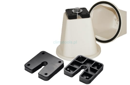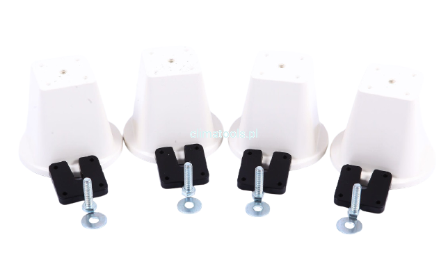 Podstawa stożkowa dla urządzeń klimatyzacyjnych. Jest to estetyczne i praktyczne rozwiązanie.Umieszczony pod miękką podporą z PCV o-ring gwarantuje bardzo dobrą amortyzację drgań.Dodatkowo w zestawie znajduje się nakładka,która pozwala wypoziomować jednostkę zewnętrzną klimatyzacji.