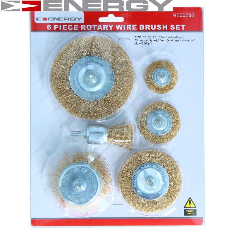 Zestaw 6szt szczotek drucianych na trzpień 6mm