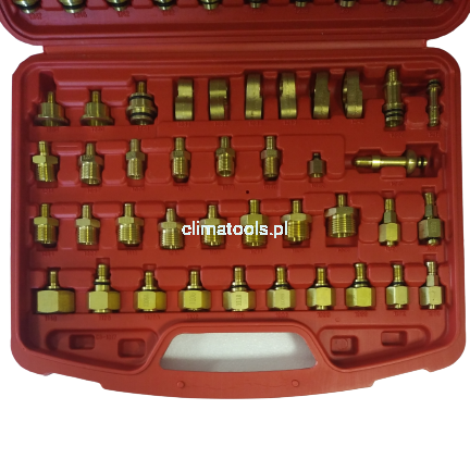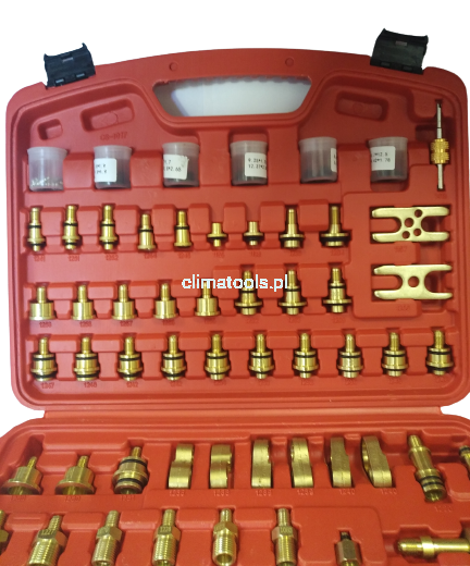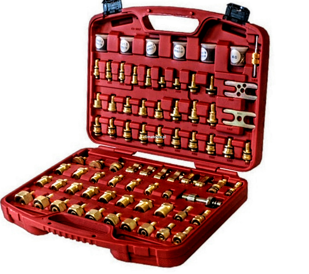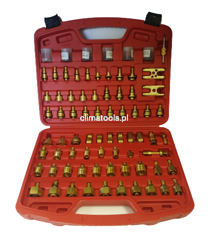 - Kompletny zestaw – 68 elementów – adaptery, zaworki, o-ringi i narzędzia serwisowe