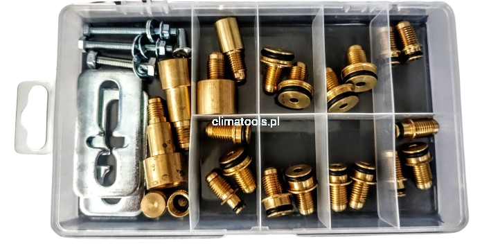 • Kompleksowy zakres rozmiarów gwintów: od 1/4" do 7/8", co zapewnia dużą elastyczność podczas pracy z różnymi systemami klimatyzacji.