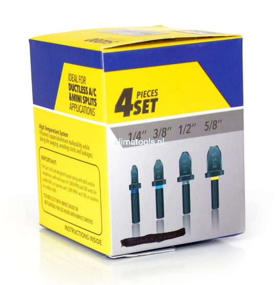 - 4 elementowy zestaw do roztłaczania rur miedzianych i aluminiowych na wiertarkę