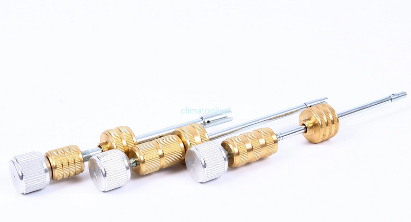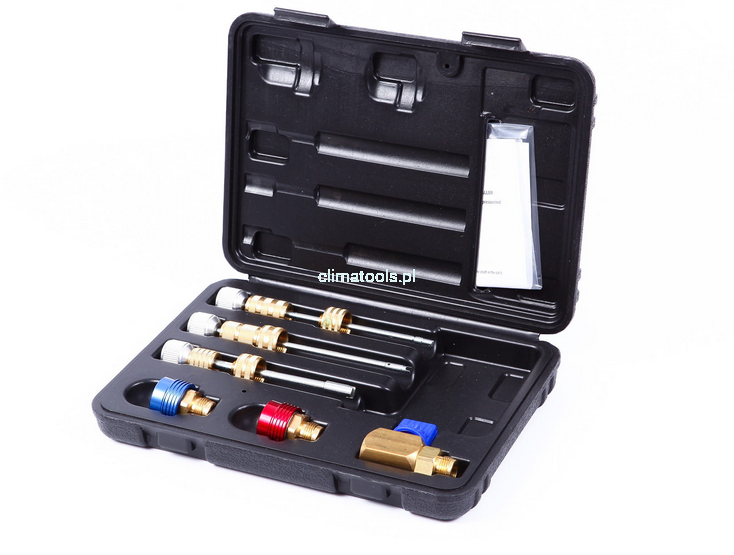 Zestaw obejmuje wszystkie rdzenie zaworów do układów R1234yf dla otworów Standard, JRA, Eaton i GM.