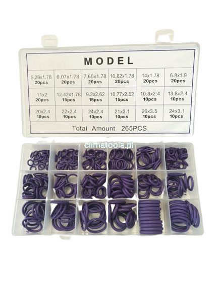 Zestaw fioletowych oringów do klimatyzacji 18 rozm. 265sztuk