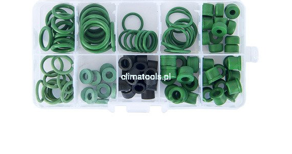 Zestaw znajduje zastosowanie w uszczelnianiu zaworów,węży i szybkozłączy w układzie A/C