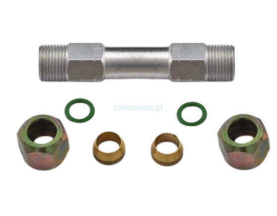 Złącze skręcane do przewodów aluminiowych klimatyzacji to idealne rozwiązanie pozwalające w krótkim czasie usunąć kłopotliwą nieszczelność. Wystarczy wyciąć uszkodzony fragment rurki, a w jej miejsce zamontować metalowe złącze naprawcze. Element naprawczy wyposażony jest w mosiężne tuleje stożkowe zapewniające trwałe i pewne uszczelnienie naprawianego odcinka. Wszystkie elementy wykonane są z wysokiej jakości materiałów, gwarantujących bezproblemową eksploatację przez długi czas.